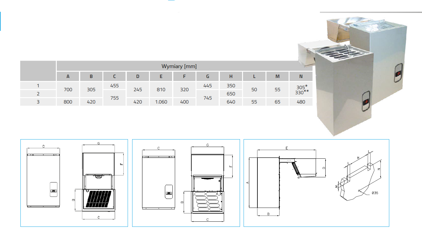 - Parametry agregatu ściennego typu monoblok przy temperaturze otoczenia do +43°C