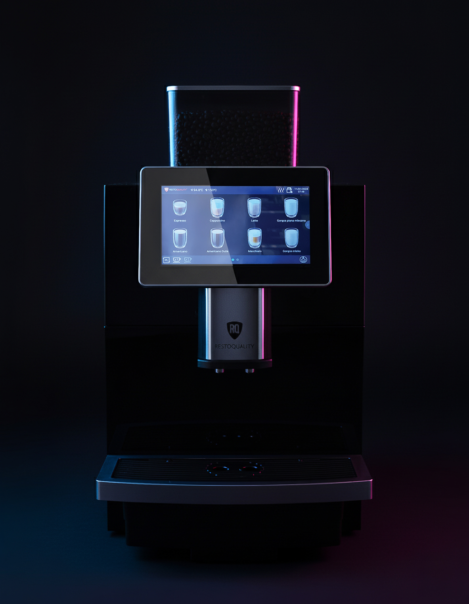 Automatyczny ekspres do kawy RQK2B z ekranem dotykowym | pojemnik 2l | podłączenie do wody | czarny