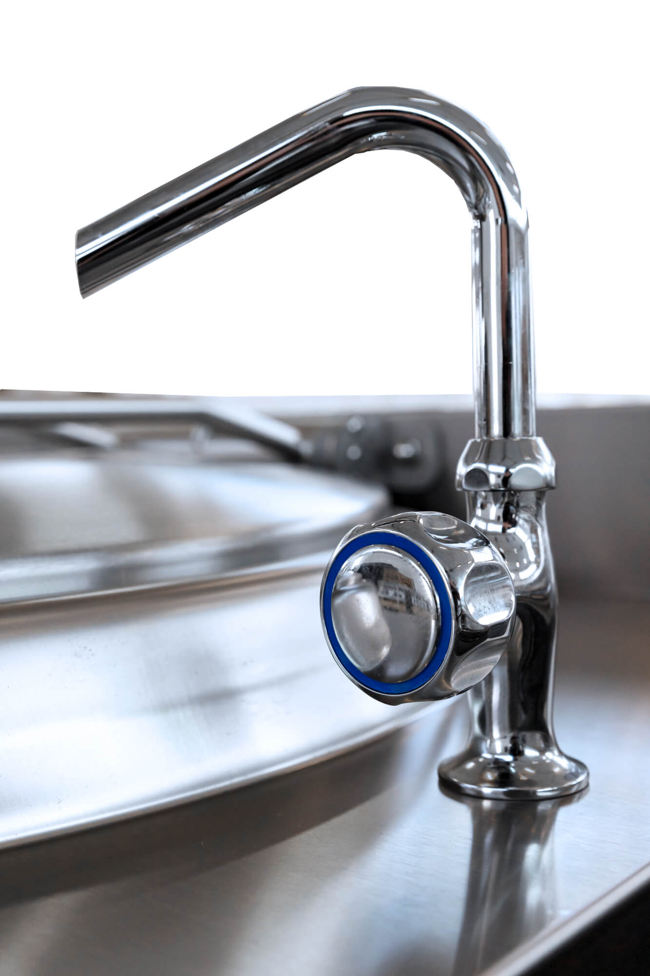 - Zbiornik ogrzewacza napełniany jest wodą za pomocą kranu z obrotową wylewką, z dwoma osobnymi przyłączami do wody uzdatnionej i zimnej wody z sieci