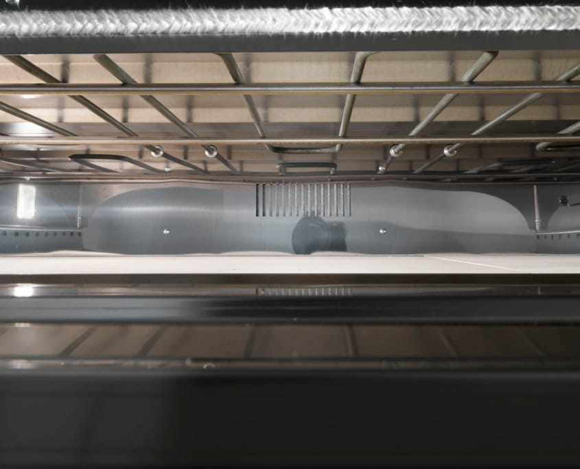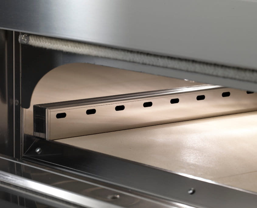 - Komora wyłożona jest płytą z kordierytu, który bardzo dobrze absorbuje i równomiernie rozprowadza ciepło oraz zapewnia doskonałą cyrkulację powietrza pod pizzą. Dzięki temu ciasto jest idealnie wypieczone
