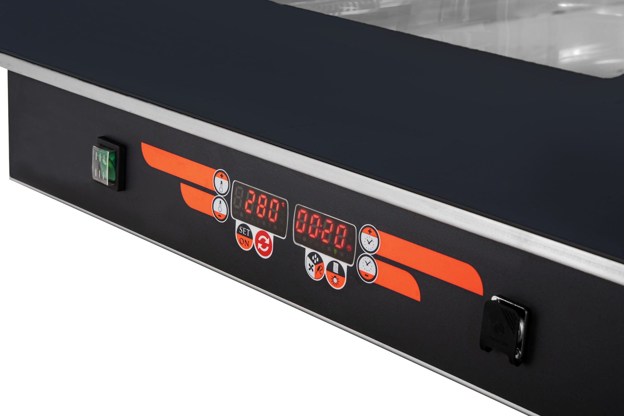 - oświetlenie wnętrza pieca gwarantują bardzo wydajne lampy halogenowe