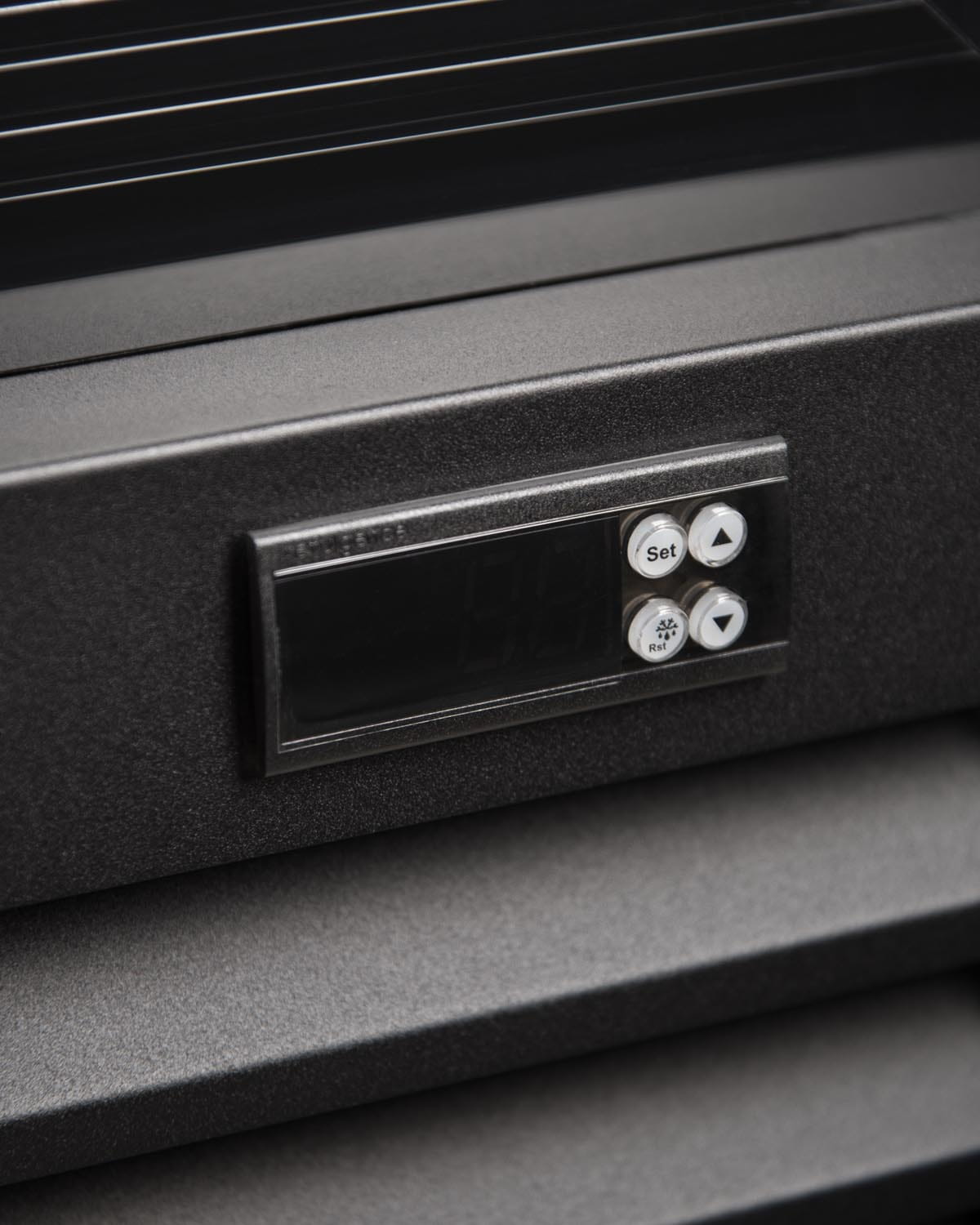 - Obudowa wykonana ze stali malowanej na kolor czarny, front w kolorze czarnym